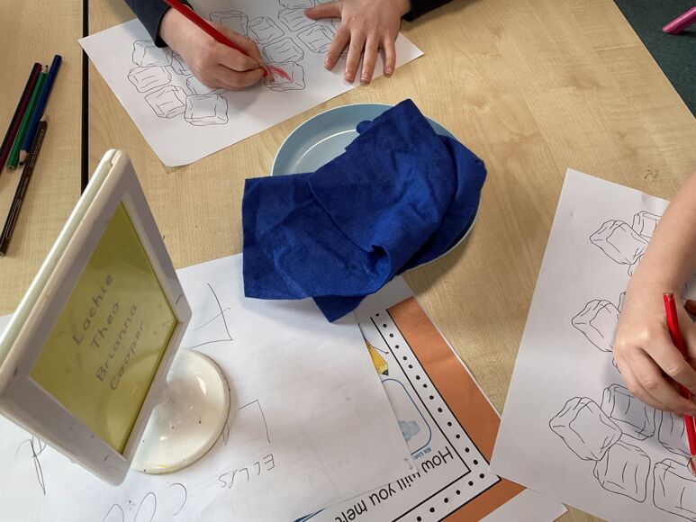 In EYFS and Key Stage one, the children had to try and decide how to melt the ice cube the fastest.